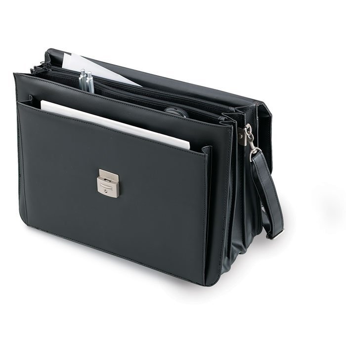 Imitation leather document bag with 3 compartments, front pocket and adjustable and detachable shoulder strap.