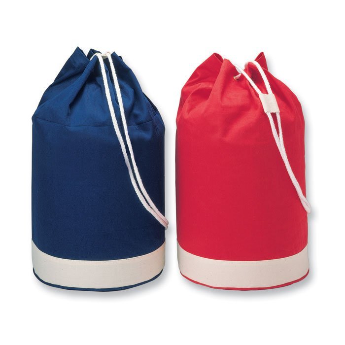 ATCH – Bicolour cotton navy duffle bag with white stripe. 200gr/m2 cotton twill.