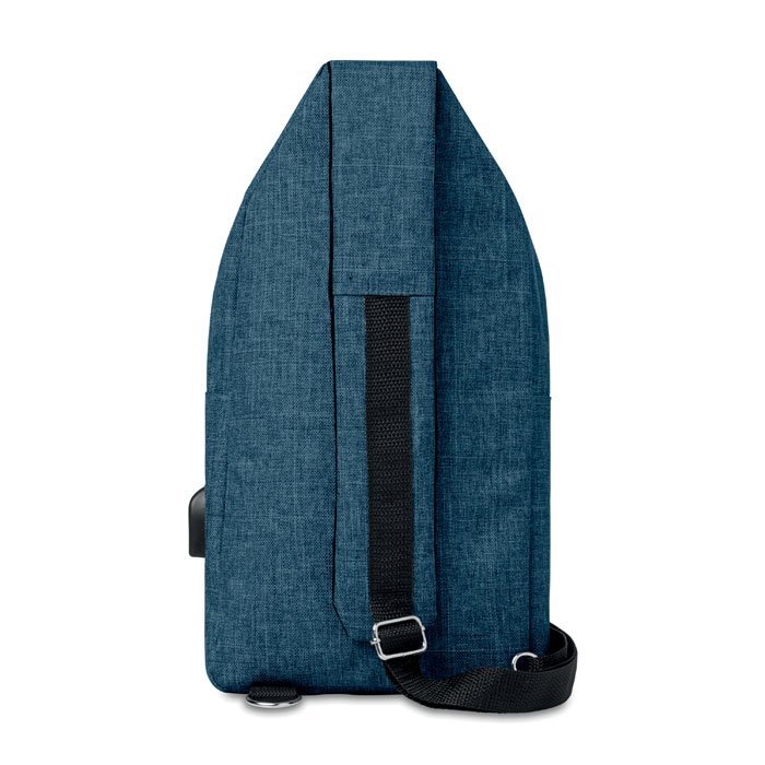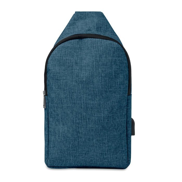 Chest bag in 600D 2 tone polyester , both sides padded suitable for 10″ tablet. Includes an inner pocket with RFID protection and additional empty plug on the side where you can put your cable through and connect to your own power bank