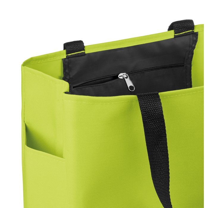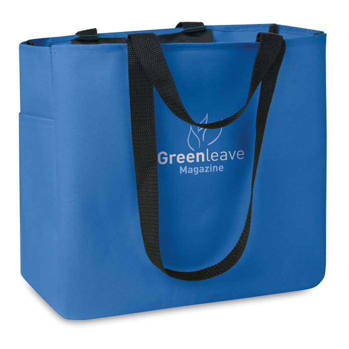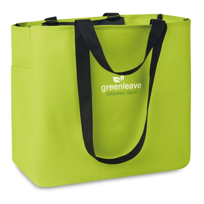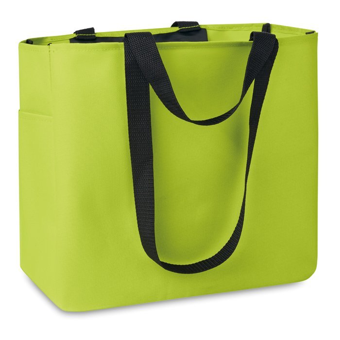 Shopping bag in 600D polyester with side pocket and inside zippered pocket. Long and short handles.